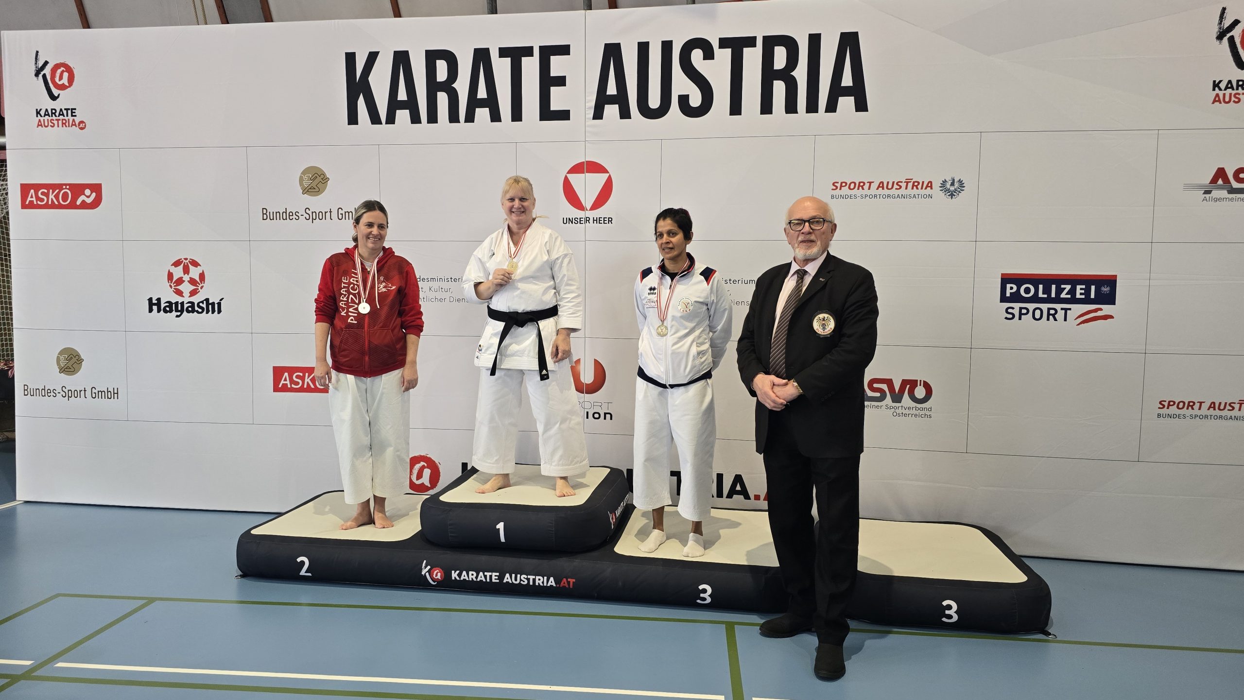 Neben den Qualifikationen unserer Athlet:innen bei den Goju Ryu Weltmeisterschaften, freuten uns besonders die Meisterschaftserfolge von Senpai Karin. Bei ihrer ersten Goju Ryu Weltmeisterschaft in Fürstenfeld konnte sie den 5. Platz erzielen und bei den Österreichischen Meisterschaften 2024 in Wien holte sie sensationell die Goldmedaille im Bewerb Kata individual female 45+ für AKARI TATSU.